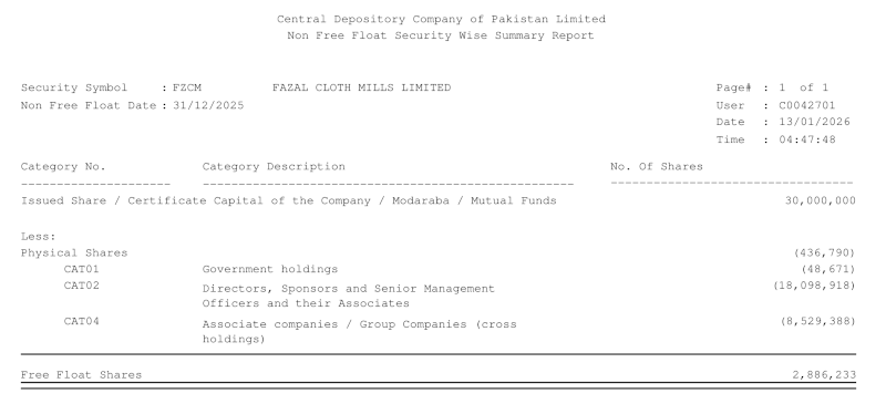 2. Free float shares are 2,886,233 out of total outstanding shares of 30,000,000 as at December 31, 2025.